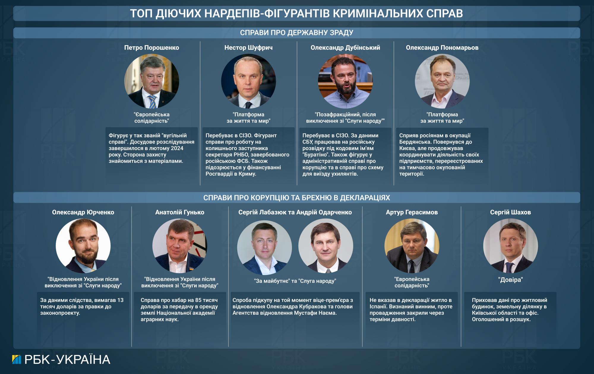 Действующие нардепы, которые фигурируют в уголовных делах (инфографика РБК-Украина)