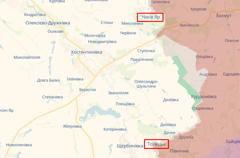 Через Часов Яр и Торецк оккупанты хотят выйти на Константиновку. В то же время в Торецком районе обороны боевые действия проходят без неожиданностей. За последние недели враг расширил зону контроля возле Забалки к югу от Торецка, а в городе уперся в многоэтажки и промзоны на перекрестке улиц Центральной и Маяковского.