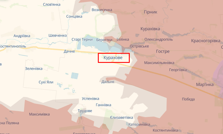 Враг атакует кураховский гарнизон в лоб с востока и поджимает с северного и южного флангов (фото deepstatemap.live)